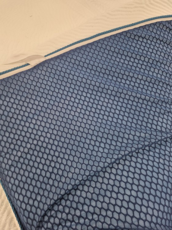 - Ramus miegas: 180 x 200 cm dydžio čiužinio užtiesalas su kvėpuojančia viskoelastine medžiaga puikiai prisitaiko prie jūsų kūno formų ir tolygiai paskirsto svorį. Specialios šalto putplasčio užtiesalo skylutės užtikrina gerą oro cirkuliaciją, todėl užtiesalas yra itin laidus orui ir bekvapis.