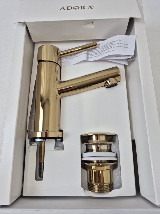 ADORA vonios maišytuvas – patrauklaus ir paprasto dizaino su auksine apdaila. Maišytuvas natūraliai dera prie bet kokio vonios kambario.