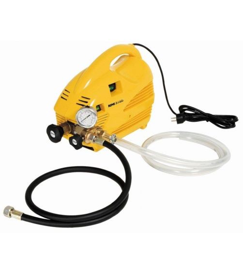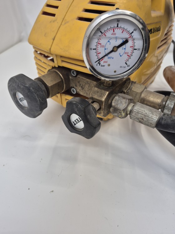 Elektrinis slėginis siurblys su manometru, p ≤ 6 MPa / 60 bar / 870 psi, skirtas vamzdynų sistemų ir rezervuarų slėgio ir sandarumo bandymui iki 6 MPa / 60 bar / 870 psi, su reguliuojamu slėgio ribotuvu.